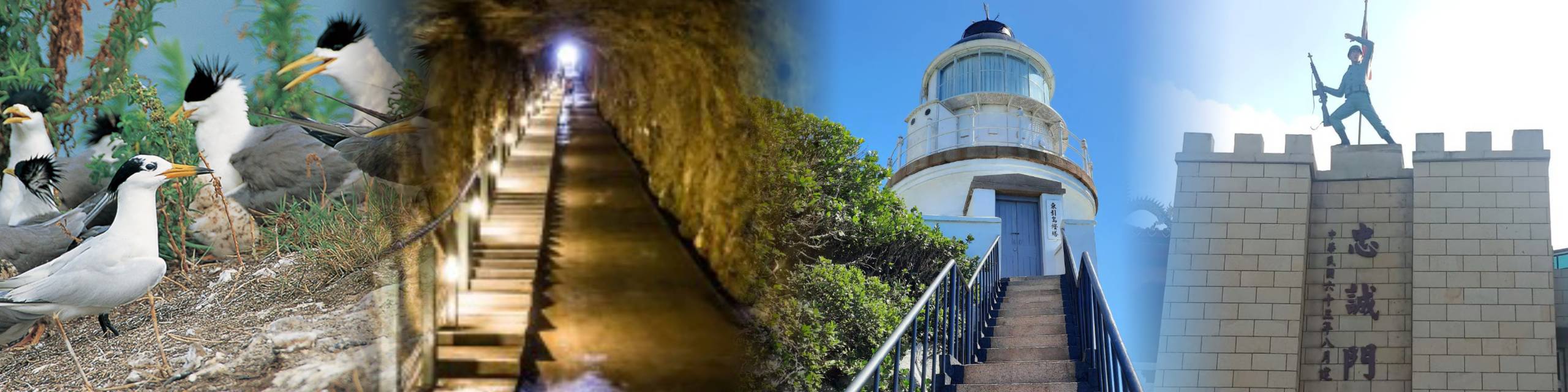 ★北海坑道 : 花崗岩鑿成井字型交錯的坑道,還能容納百艘艦艇,真可說是鬼斧神工的蓋世之作,這也是金馬地區最大的坑道碼頭。讓旅客走過歷史,見證鬼斧神工典藏燦爛的回憶。