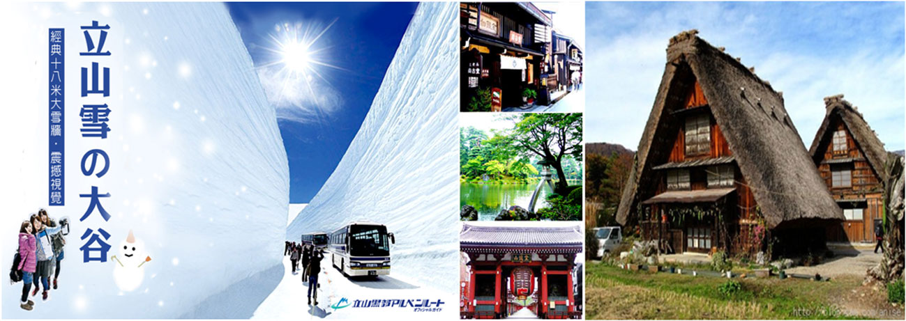 富山縣(立山雪壁之旅~搭乘六種交通工具立山連峰【電纜車】-美女平【高原巴士】-室堂【隧道巴士】-大觀峰【空中纜車】-黑部平【黑部地下纜車】-黑部湖【徒步】-黑部水庫 【關電山路巴士】) -白馬溫泉