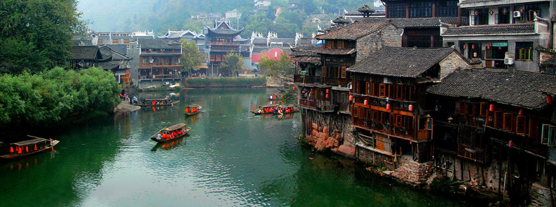 早餐後遊覽曾被紐西蘭作家路易艾黎稱作中國最美麗的小城之一---鳳凰古城。遊中國南方長城、保存完好的唐朝舊縣治黃絲橋古城、有華夏第二洞之稱的奇梁洞----觀水中倒影,穿洞中迷宮。一代文豪沈從文故居,古老的東門城樓,千軍過道的北門跳岩,乘悠悠木船欣賞沱江醉人風光,紅燈籠高高掛起的吊腳樓群,虹橋風雨樓。走在古老悠長的青石板街,您會看到各式各樣的銀器,叫人饞涎欲滴的小吃,叫不出名的土特產,讓人驚嘆的苗家老太的剪紙。