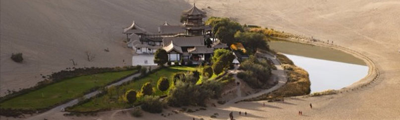 早餐後,專車前往有『絲路明珠』之稱的敦煌市。午餐後前往『中國三大石窟』之首的★莫高窟,洞窟始鑿於西元四世紀,今存洞窟492個,壁畫45000平方公尺,彩塑雕像2415尊,是中國現存石窟藝術寶庫中規模最大、內容最豐富的一座,現已被聯合國教科文組織列為世界文化遺產。續向★鳴沙山出發,鳴沙山為一沙漠地帶,在此★騎乘沙漠之舟,拜訪月牙泉,月牙泉在鳴沙山懷抱之中,茫茫大漠之中亭台樓榭,再加上起伏的沙山,清澈的泉水,景緻令人畢生難忘!
