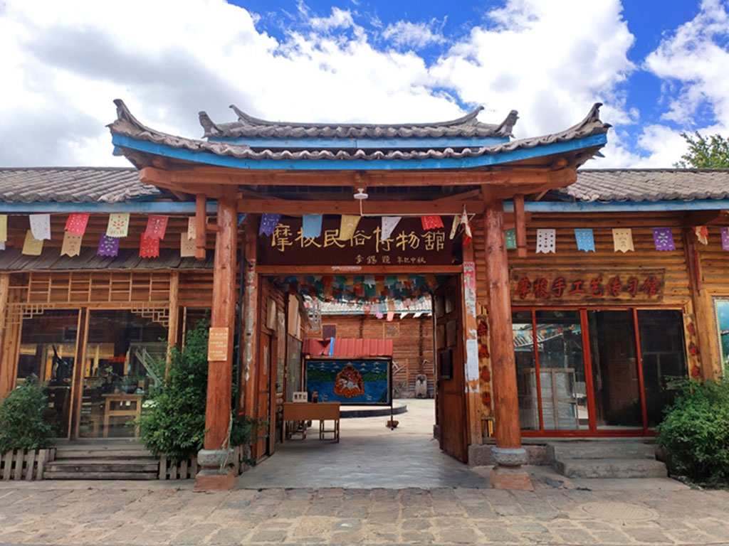 ◆【摩梭民俗博物館】 是中國惟一反映母系氏族社會民俗的博物館,展示正宗摩梭文化及其發展史,有摩梭女兒國風格的花樓、祖母屋、 經堂、文物館、圖片資料、世界非物質文化遺產為主題的大小型展館,讓大家瞭解一個真實的摩梭,讓摩梭傳統文化傳承下去,爾青和次仁多吉自一九九八年起四處收集摩梭人民在生產生活中使用的物品,拍攝日常生活的照片等,在之前一個簡單的陳列室基礎上創辦摩梭民俗博物館。在花房、祖母房、達巴館、服飾館、喇嘛經堂、民俗陳列館、圖片展覽館、茶馬古道館基礎上,增設飲食館、摩梭名人館、影片展覽館、真人展示勞動作坊等。 行車距離瀘沽湖遊湖-(約4小 時)麗江