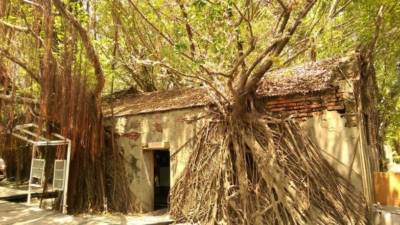 - 安平樹屋~大約建於十九世紀末及日治初期,此處曾做為「大日本鹽業株式會社」出張所倉庫,經百餘年歲月滄桑後,倉庫牆面滿佈榕樹盤據的氣根,高聳的榕樹茂密的樹冠彷彿成為倉庫的屋頂,形成特有的屋樹共生奇景。